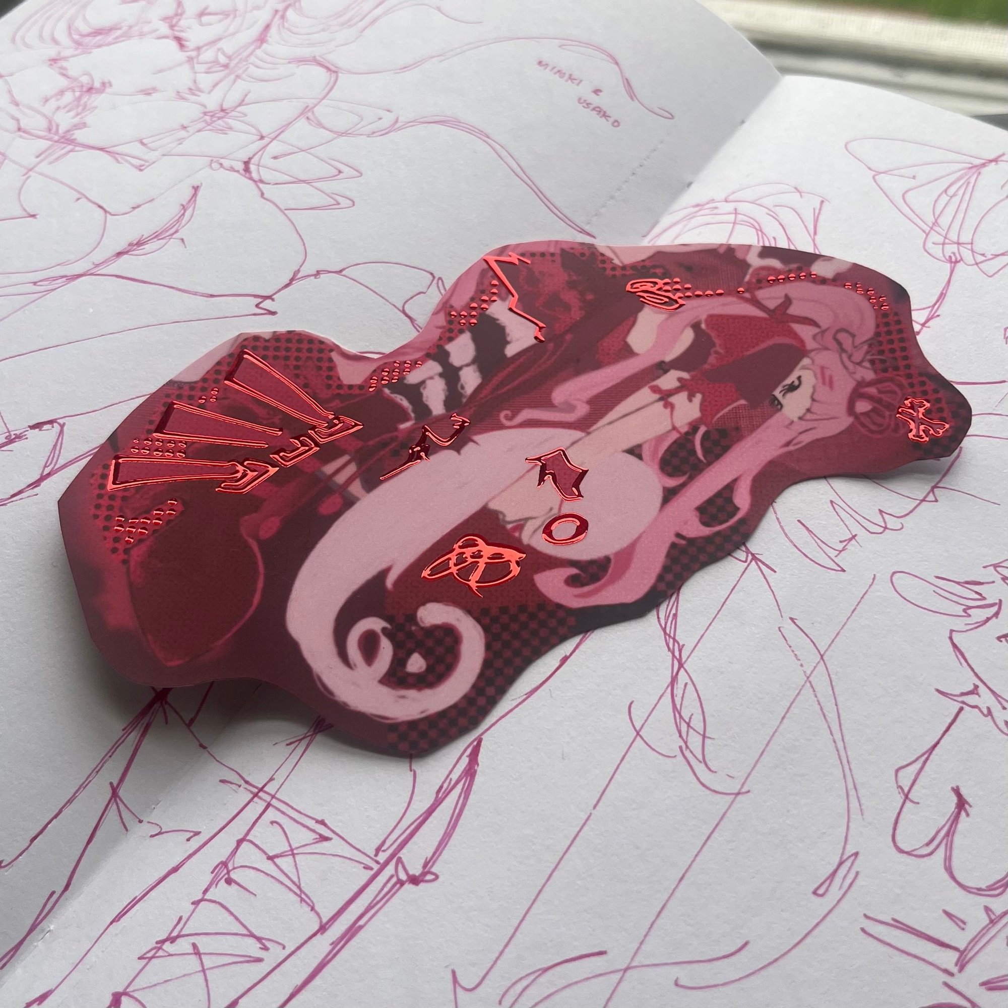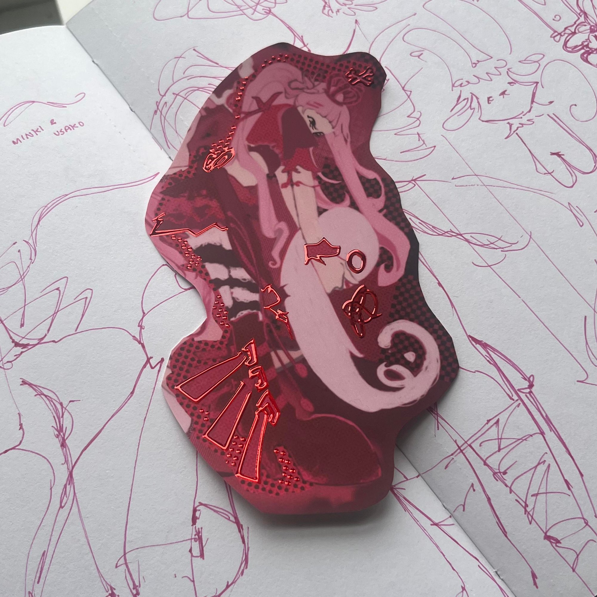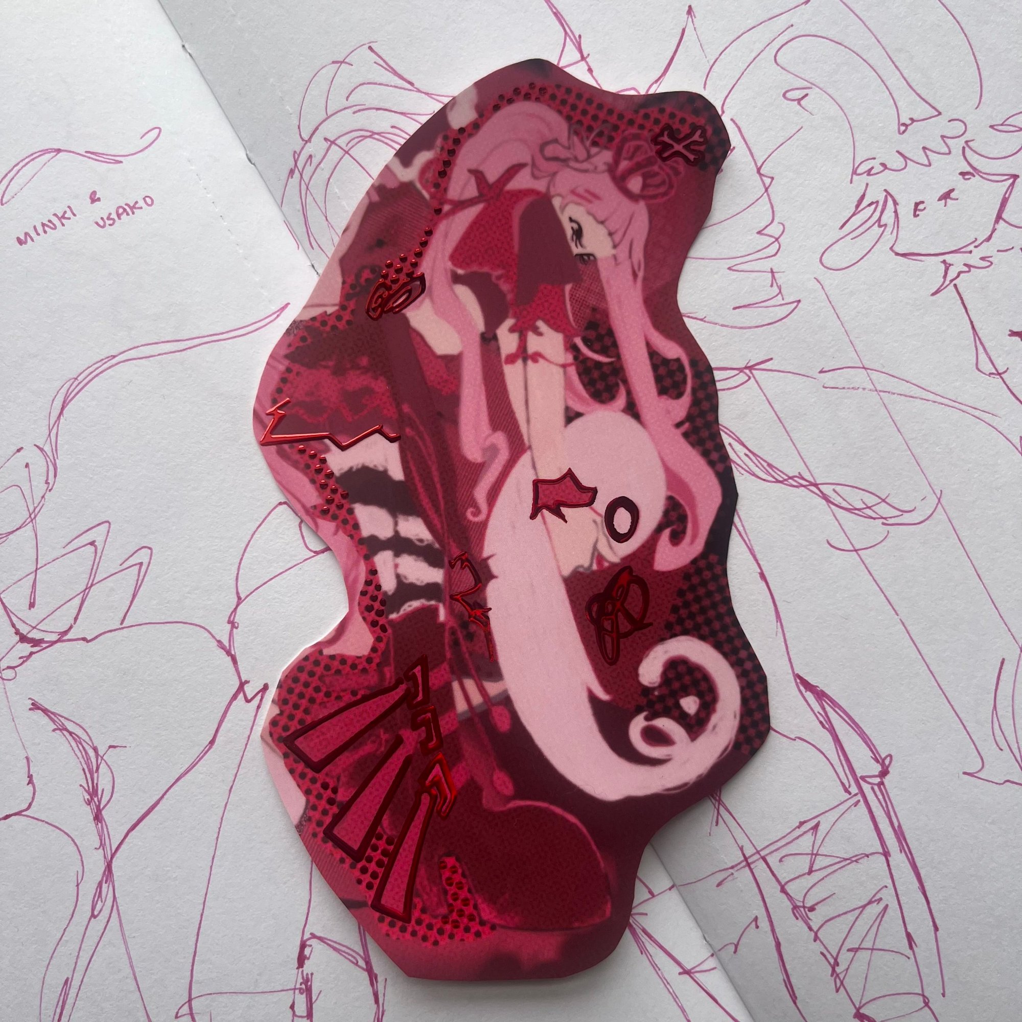 punky cuteness with red cold foil stamped lining details <3 stickers' borders are cut personally by me, stickers vary slightly.
